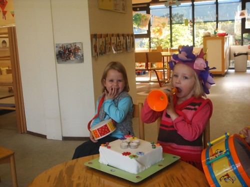 Muziek en taart op de laatste dag in de peuterspeelzaal.